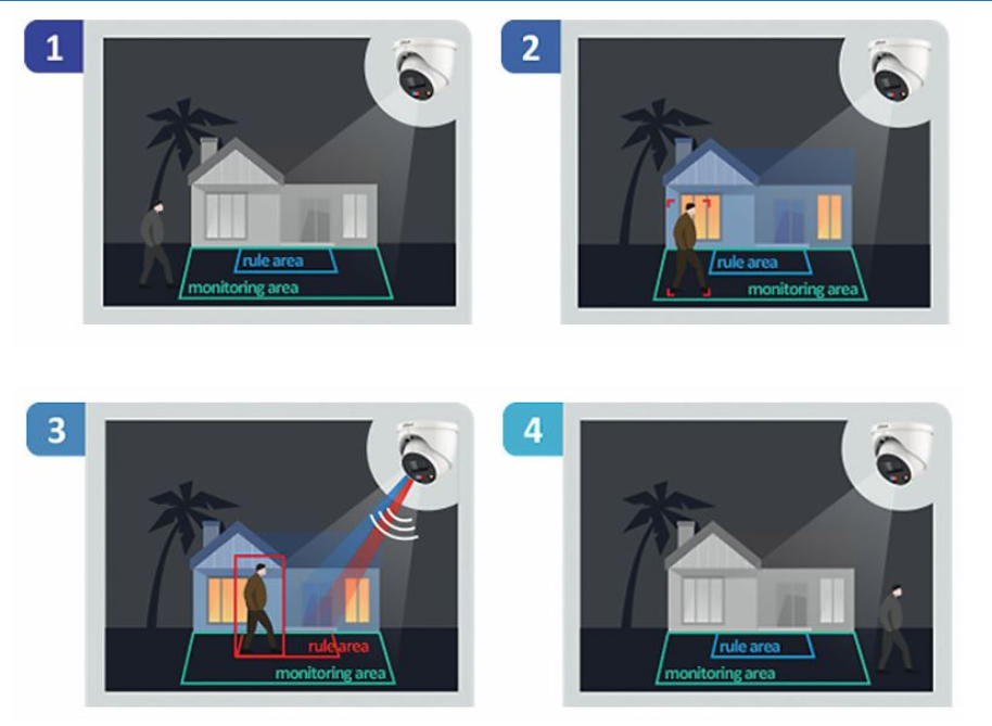 Die L-DN-5403-A & L-KA-5403-A sind IP-Kameras mit smarter Beleuchtung. Betreten Personen den Erkennungsbereich, kann die Kamera automatisch von IR-Licht auf Weisslicht